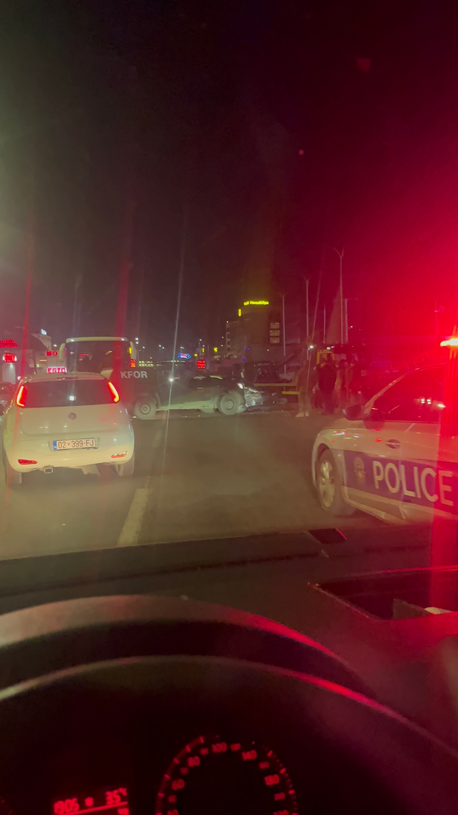 Një automjet i KFOR shihet të jetë përplasur me një automjet tjetër