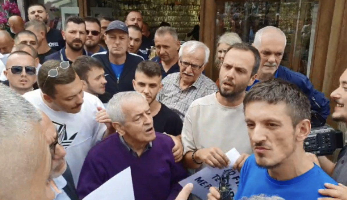 Pamjet që kanë dalë shihen disa persona se si tentojnë të largojnë gazetarin Krasniqi nga raportimi për protestën, duke i thënë se ka ardhur për të provokuar.