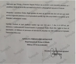 Gjykata Themelore në Mitrovicë ka urdhëruar letërrreshtim vendor ndaj ish-shefit të operativës rajonale në veri të Mitrovicës, Zhelko Bojiq i cili dyshohet për veprat penale, “Keqpërdorim i pozitës apo autoritetit zyrtar” dhe “pengim i të provuarit apo procedurës zyrtare”.
