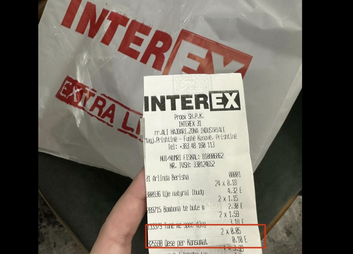 Një qytetar ka denoncuar marketin Interex i cili gjendet në magjistralen Prishtinë – Fushë Kosovë pasi që qesja e plastikës me logo iu faturua në faturë.