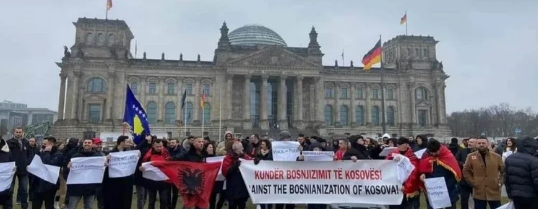 “Kundër bosnjizimit të Kosovës”, “Vuçiq=Putin”, “Vuçiqi e do edhe një luftë në Evropë”, “Jo Asociacionit” e “Jo ndarjes etnike”, ishin disa nga pankartat protestuese në Berlin.