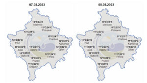 Të premten –Dita e premte parashihet të jetë dita më e nxehtë e kësaj jave. Parashihen vranesira të lehta dhe intervale të gjata me diell. Temperaturat minimale do të lëvizin ndërmjet 10-12 gradë Celsius, ndërsa maksimalete e ditës parashihen të lëvizin ndërmje 25-28gradë Celsius. Do të fryjë erë e lehtë nga drejtimi i verilindjes.”