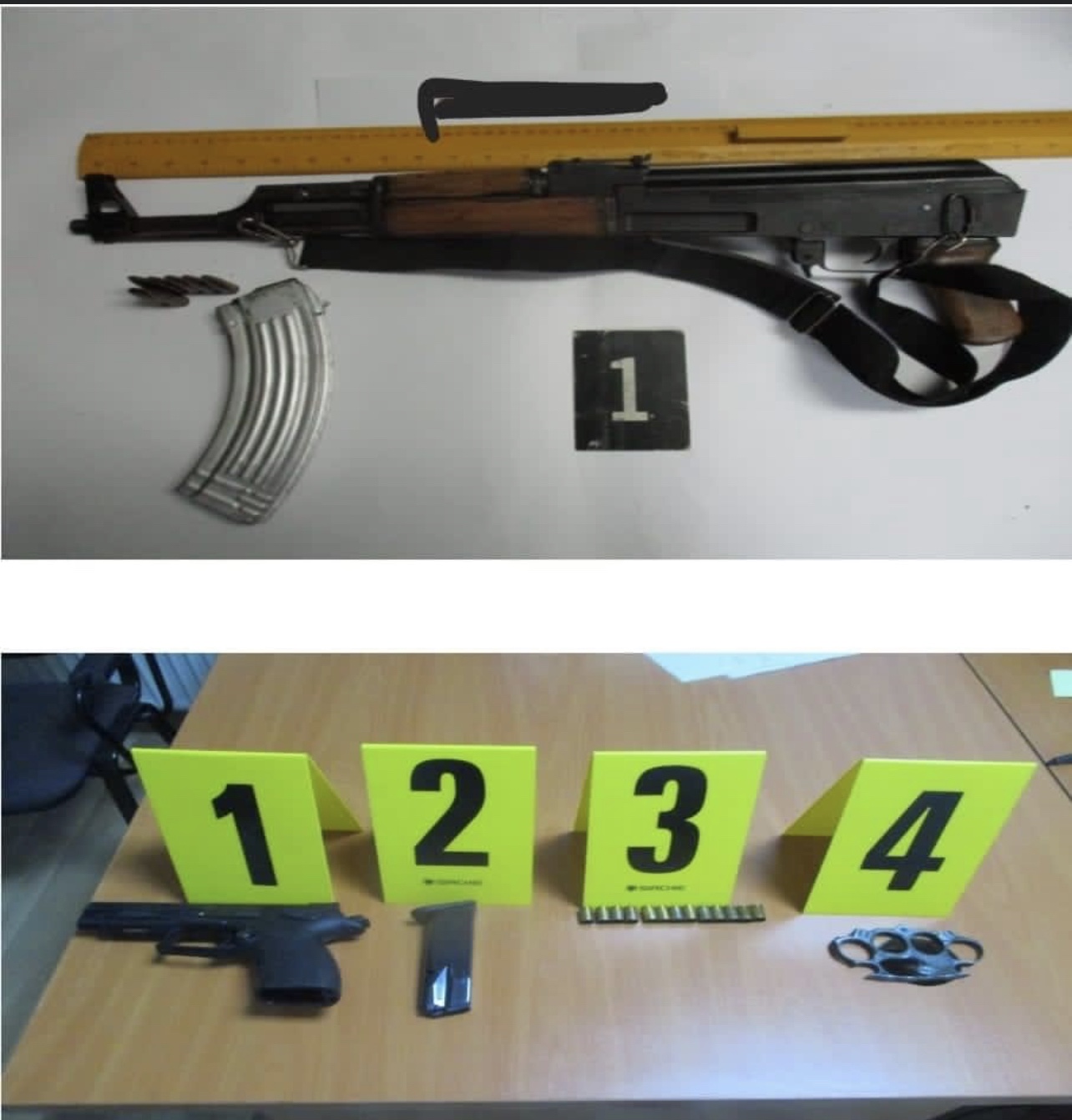 Rasti i dytë është raportuar sot me datën 05.07.2022 rreth orës 01:43 në Stacionin Policor Vushtrri, ku nga një veturë në lëvizje në segmentin rrugor Vushtrri –Mitrovicë janë dëgjuar të shtëna me armë zjarri. Pas marrjes se informatës, njësia e trafikut ka arritur ta ndaloj veturën e dyshimtë Mercedes dhe vozitësi- personi i dyshimte A.J.,52 vjeçar është shoqëruar ne stacionin policor, ku pas kontrollimit të automjetit është gjetur dhe konfiskuar si prove materiale, një armë ,,Dynamik”, 13 gëzhoja, një karikator i zbrazet dhe një boks i hekurt.
