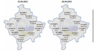 E premte – Mot kryesisht i qetë dhe me vranësira të fokusuara kryesisht në relievin malor, ndërsa në viset e ulëta dhe mesatare parashihen intervale të gjata me diell. Temperaturat minimale do të lëvizin ndërmjet 9-11 gradë Celsius, ndërsa maksimalet e ditës parashihen të lëvizin ndërmjet 22-25 gradë Celsius. Do të fryjë erë kryesisht nga veriperëndimi me shpejtësi 1-6m/s.