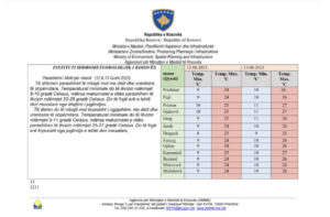 Instituti Hidrometeorologjik i Kosovës njofton se sot parashihet të mbajë mot me diell dhe vranësira të shpërndara. Temperaturat minimale do të lëvizin ndërmjet 8-10 gradë Celsius, ndërsa maksimalet e ditës parashihen të lëvizin ndërmjet 23-25 gradë Celsius.