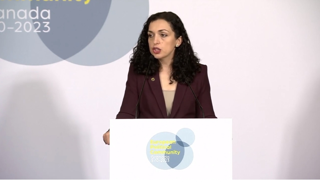 Pas samitit, në një konferencë për media ajo ka folur rreth agresionit serb në Banjskë të Zveçanit.