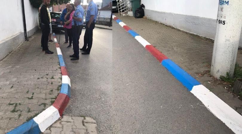 Policia ka njoftuar opinionin publik se sot në rrugën “Lidhja e Lezhës” në Vushtrri, një qytetar me inicialet F.D. (1934), në mënyrë të paautorizuar ka bërë ngjyrosjen e trotuareve me ngjyrat: e kuqe, e bardhë dhe e kaltër, para shtëpisë së tij.