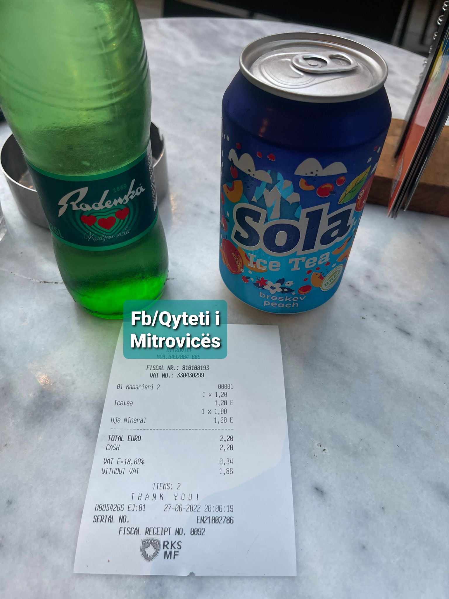 Sonte në Mitrovicë u vërejt rritja e çmimit të ujit Mineral nga 0.70 cent në 1 euro, dhe çmimi i Ice Tea nga 1 euro në 1.20