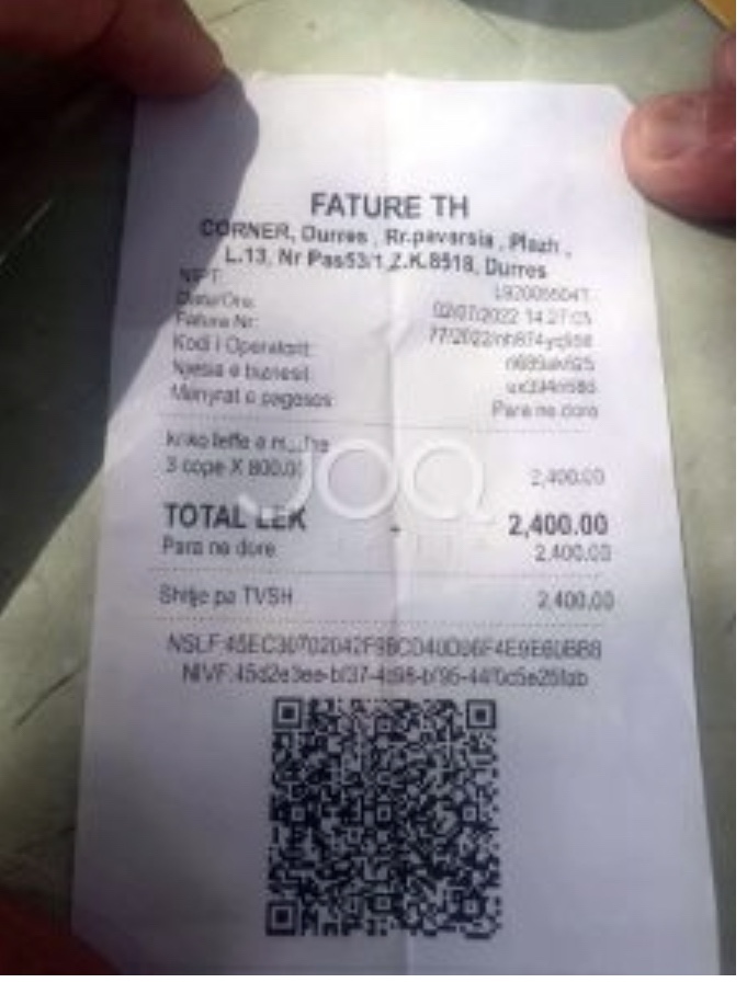 Por kur u erdhi fatura ata mbetën të habitur pasi një kriko birrë ishte faturuar 8 mijë lekë të vjetra. Për tre kriko ata kanë paguar 24 mijë lekë të vjetra (20 euro).