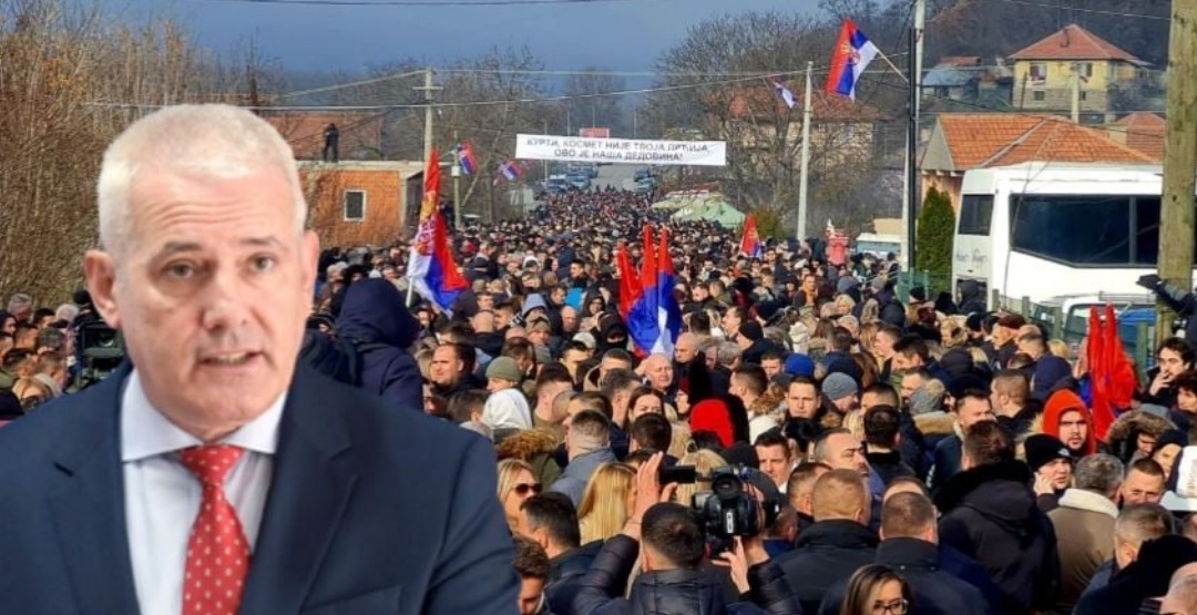 Protesta u mbajt në vendin ku ndodhet një nga nëntë barrikadat e ngritura nga disa qytetarë serbë në veri të Kosovës, pas arrestimit të ish-policit serb të Policisë së Kosovës, Dejan Pantiq, më 10 dhjetor.