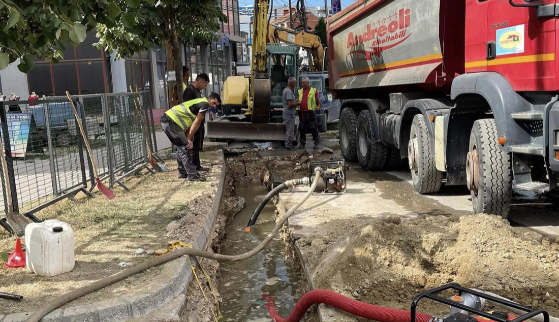 Ndërprerja e ujit pritet të zgjasë deri nesër kur edhe pritet të filloi sanimi i gypit të dëmtuar pasi që specifikat e dëmtimit pamundësojnë intervenim më të shpejtë.