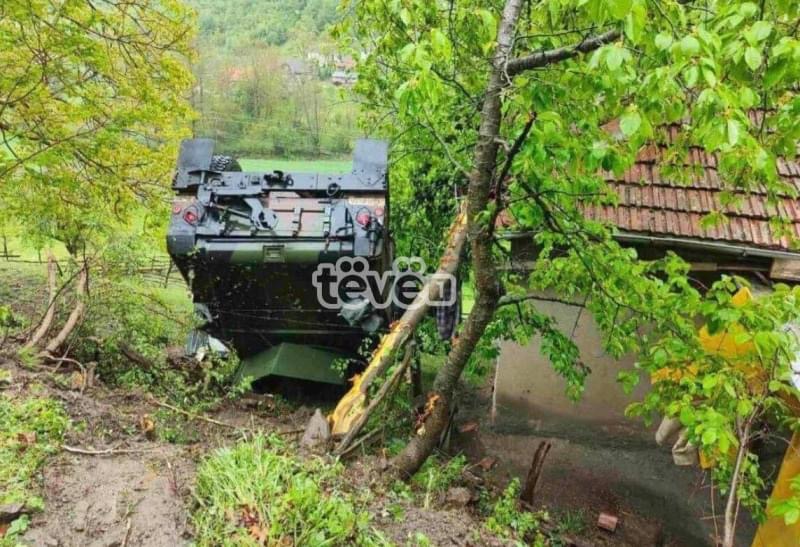 Vetura ushtarake siç shihet nga fotot e siguruara është rrokullisur afër një oborri të një shtëpie.