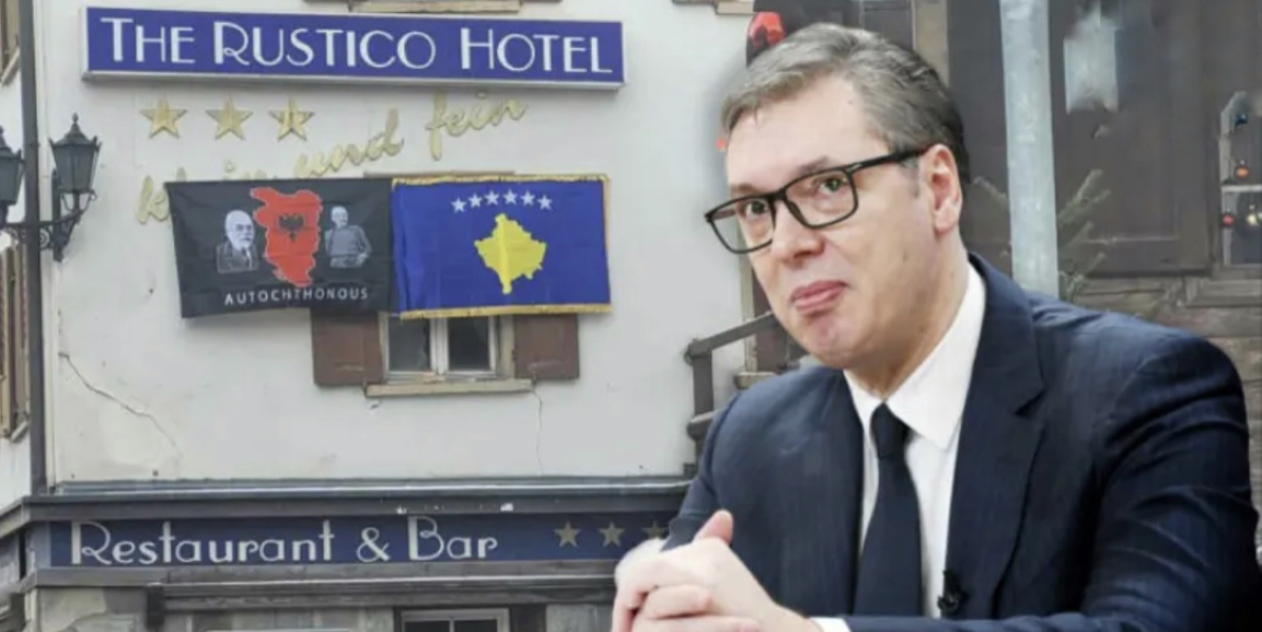 Vuçiç-it ia vendosin përballë hotelit flamurin e Kosovës dhe atë “Autochthonous”